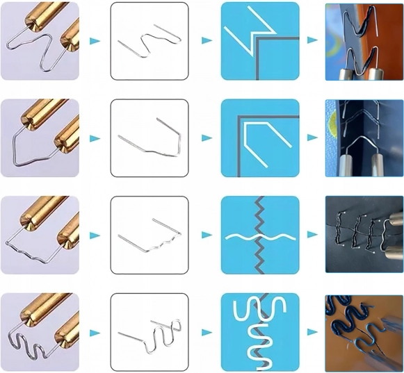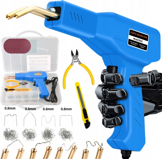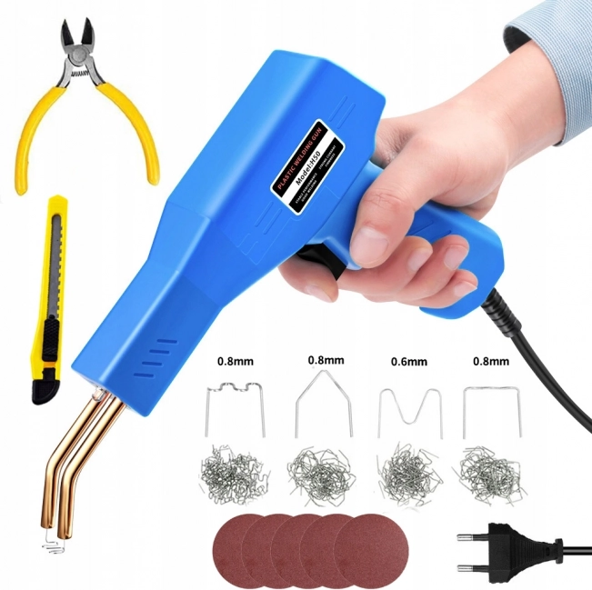 Заваръчната машина за пластмаси е проектирана да отговори на всички ваши нужди за ремонт на пластмасови материали и за запълване на пукнатини. Комплектът включва 200 стоманени скоби в четири типа по 50 броя от всеки, предназначени за различни приложения.