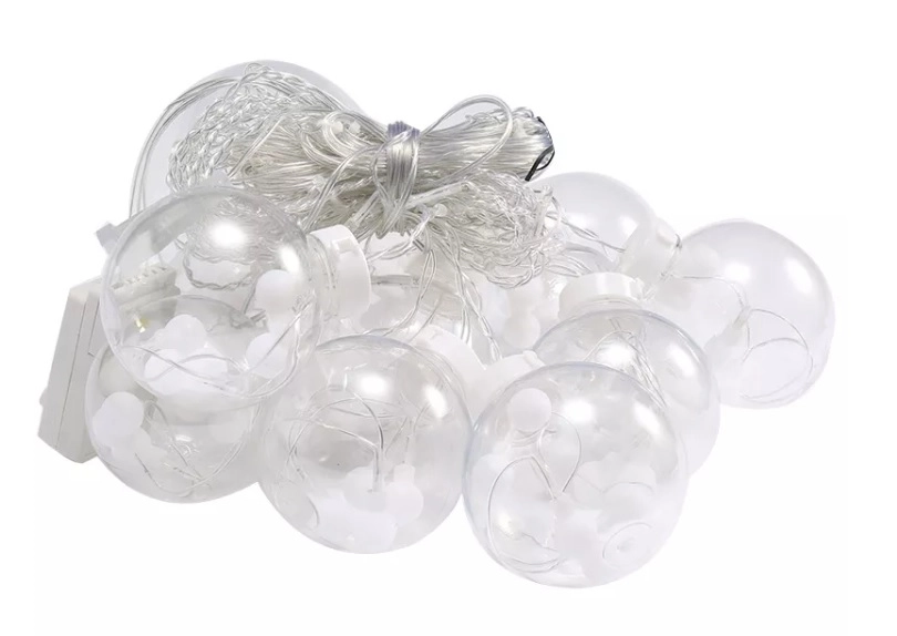 Висящата светлинна завеса с пластмасови топчета превръща интериора ви в живописна зимна сцена.