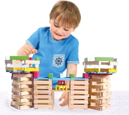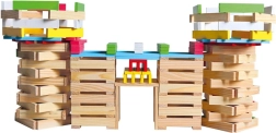 С този конструктор няма граници за детското въображение! Дървеният конструктор град Bino съдържа общо 150 елемента, които позволяват изграждане на разнообразни структури и насърчават логическото мислене чрез прецизен дизайн и цветови контрасти.