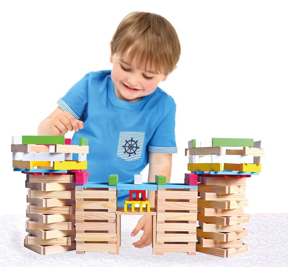 Конструкторът включва 150 елемента, които подпомагат креативността и развитието на логическото мислене.