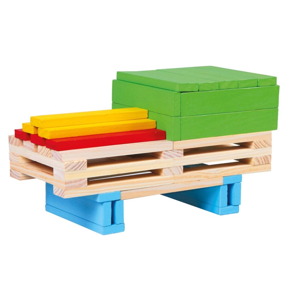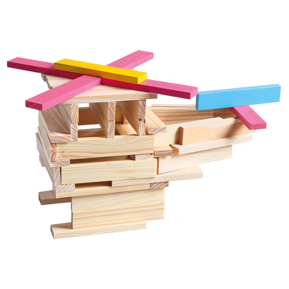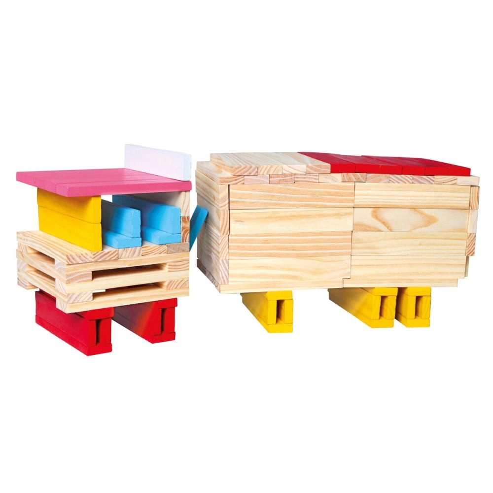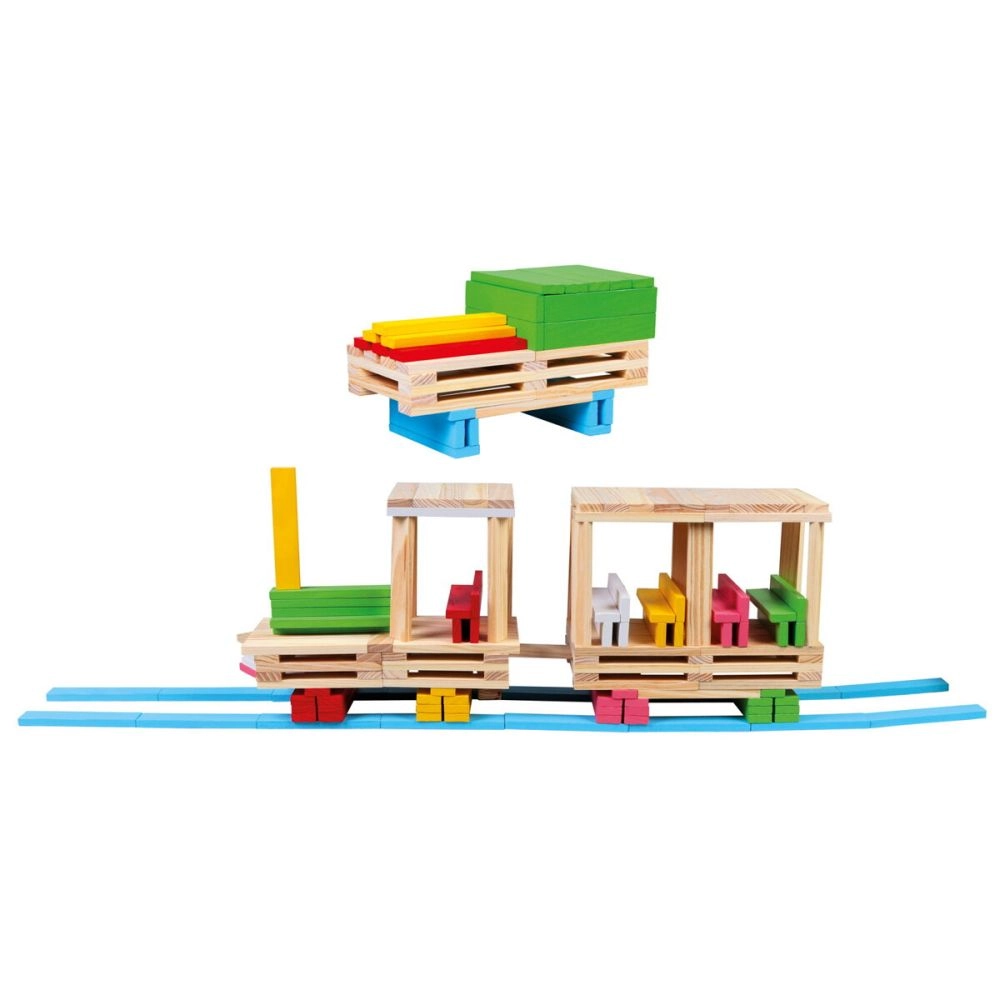 Оставете въображението на децата си да тича на воля с този цветен дървен конструктор от Bino, който съдържа 150 елемента. Перфектен за креативна игра и развитие на фината моторика.
