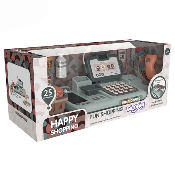 Касата Woopie разполага с реалистичен LCD дисплей и звуков скенер за продукти, което придава автентичност на играта на магазин.