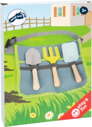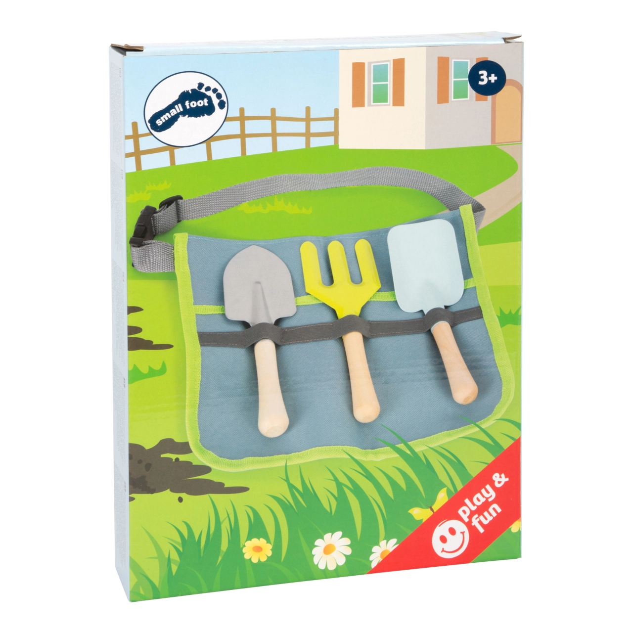 Този умел комплект комбинира удобна чантичка за кръста с практични инструменти, за да могат децата лесно да садят, разрохкват и пренасят пръст. Металните инструменти с гладки ръбове и дървените дръжки са пригодени за малки ръце и издържат на ентусиазираното детско темпо. Чантичката с регулируем колан държи инструментите под ръка и позволява свободно, безопасно движение.