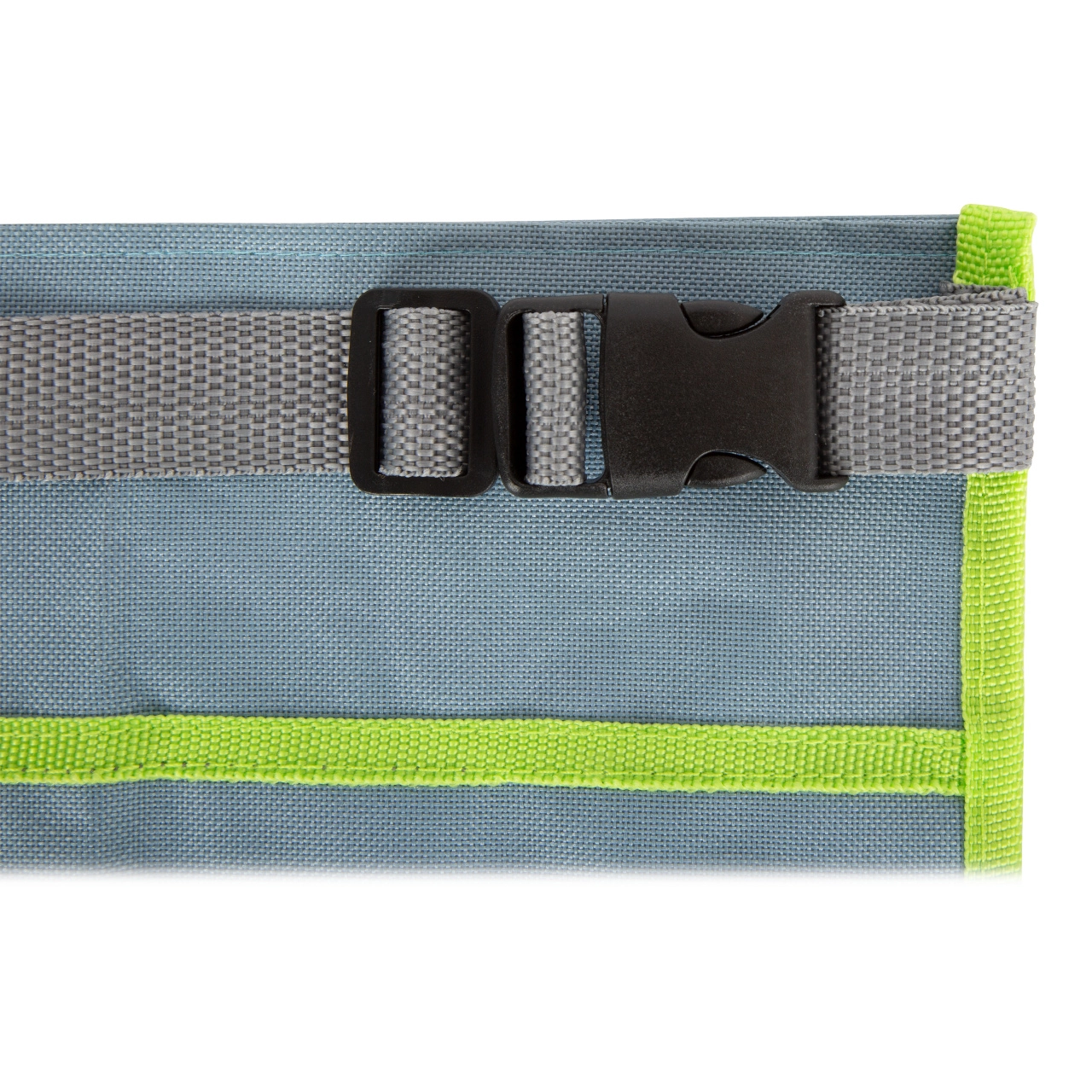 Текстилната чантичка с практични джобове държи инструментите сигурно на място. Регулируемият колан с щракваща катарама лесно се напасва към растежа на детето.