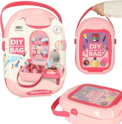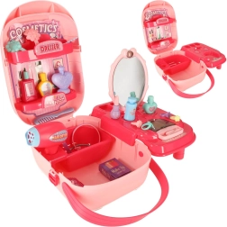 Козметичен комплект в преносим куфар за малки кокетки и бъдещи фризьори предлага много аксесоари за креативна игра: сешоар, гребен, огледалце, фиби, пръстени, гривни и цветни шишенца. Куфарът има прозорче за персонализация – поставете снимка или името на детето и създайте уникален комплект за ролеви игри. Чудесен за развитие на фината моторика и социалните умения. Не съдържа истинска козметика.