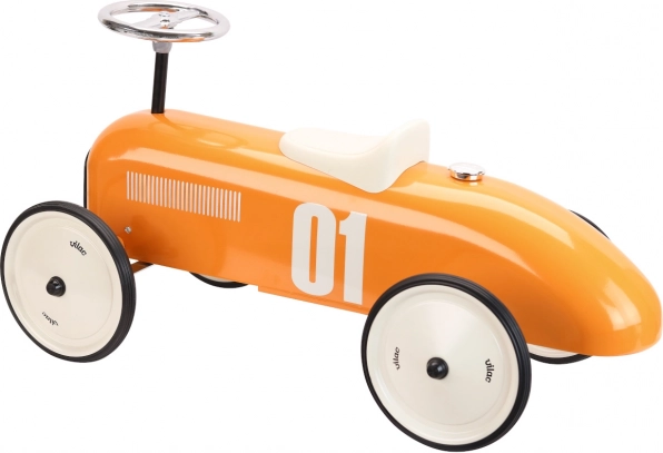 Стилна детска проходилка във винтидж състезателен дизайн ще зарадва малките шофьори от 18 месеца. Има изцяло метална конструкция, тихи гумирани колела, прецизно управление с волан и максимално натоварване 20 кг. Оранжевият металик и бялата седалка придават стил на играта у дома и навън.