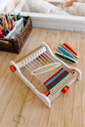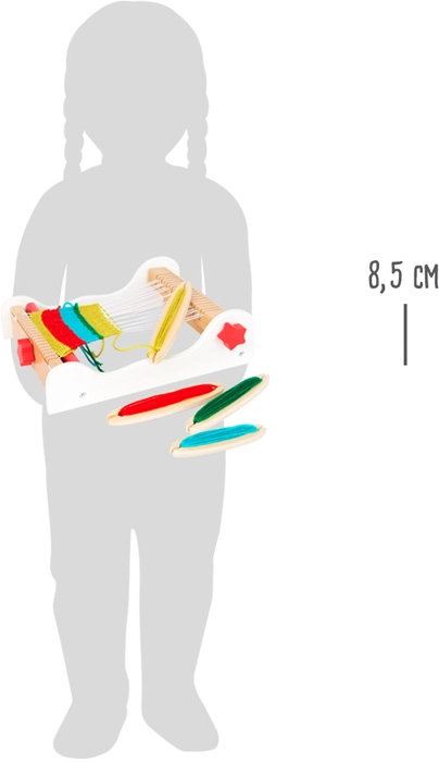 Станът е компактен и стабилен, подходящ за маса и детска стая. Простото управление насърчава самостоятелността и първото запознаване с техниката на тъкане. Чудесен за развитие на креативността и въображението при деца от 3 години.