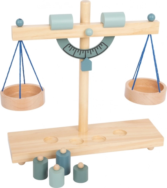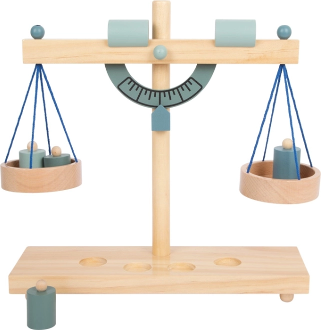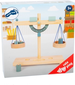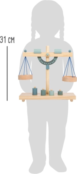 Тази стабилна дървена купична везна е идеална както за детски магазин, така и за детска кухничка. Двете окачени купички и комплектът от четири дървени тежести позволяват на децата прецизно да „претеглят стоката“ и да разберат как работи равновесието. Плъзгащите се противотежести на рамената служат за фино настройване – чудесен начин за трениране на търпение и концентрация.