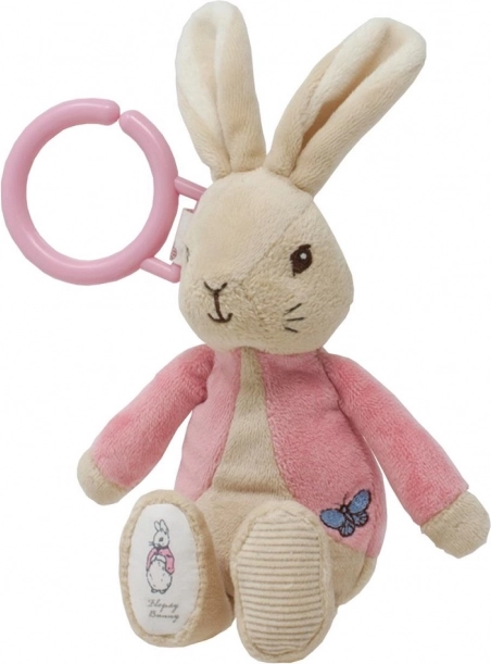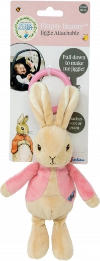 Това плюшено зайче Флопси е идеалната играчка за деца от раждането. Проектирано е с мисъл за безопасността и забавлението на децата. Флопси се закрепва лесно с помощта на розов пластмасов ринг към всяка количка, столче за кола или кошара, което го прави чудесен спътник при пътуване.