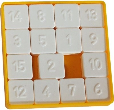 Този плъзгащ се пъзел е идеален за всички, които обичат предизвикателства и логически игри. Съдържа петнадесет елемента с числа, които трябва да се подредят чрез преместването им. Целта е единицата да бъде в горния ляв ъгъл. По време на играта не е позволено да докосвате елементите с пръсти или да ги вадите от кутийката.