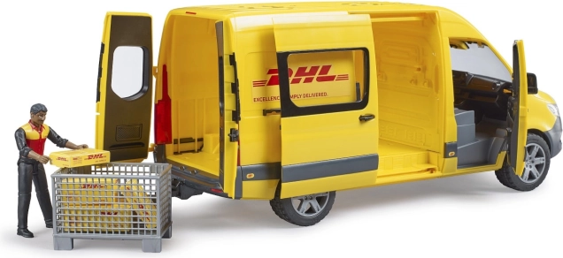 Този модел Bruder Mercedes-Benz Sprinter DHL е оборудван с реалистични плъзгащи се врати и просторен интериор. Микробусът идва с фигурка на шофьор и аксесоари като палети и пратки. Играта става още по-забавна с отварящи се странични и задни врати, което прави модела идеален за ролева игра на сценарии за доставка на пратки. Голямото товарно пространство позволява безопасно съхранение на всички необходими вещи за доставка. Прекрасно забавление за деца от 4 години.