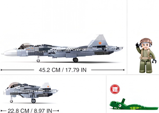 Сглобете модерен руски реактивен изтребител SU-57 във версия 2 в 1 с конструктора Sluban Model Bricks. Този комплект предлага 893 части, 1 фигурка и средна трудност за страхотно строително изживяване. Елементите от издръжлива ABS пластмаса са съвместими с LEGO, Cobi и Mega Bloks, а иновативните фигурки имат въртящи се и люлеещи се части за по-добра играемост.
