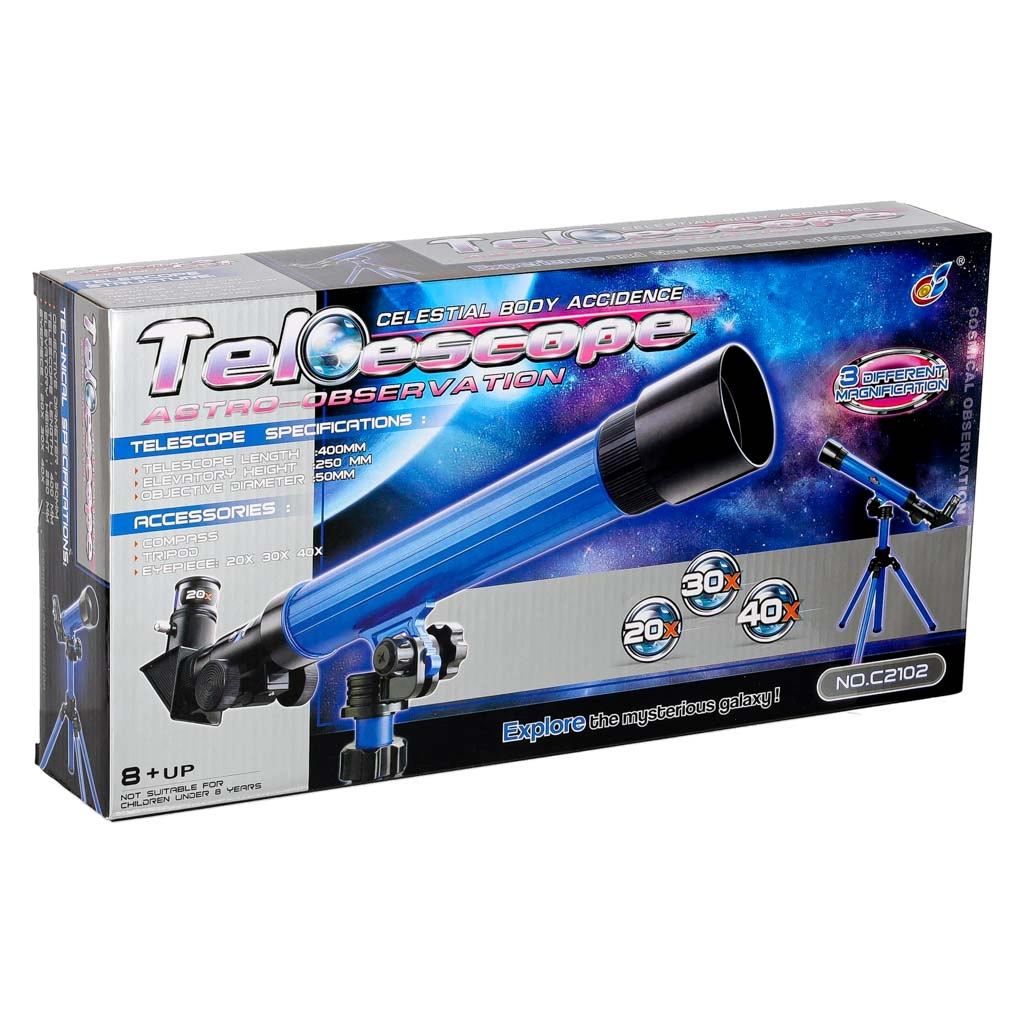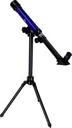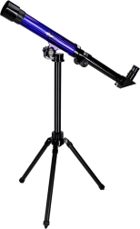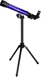 Този детски телескоп е чудесен избор за първи досег с астрономията. Предлага три нива на увеличение (20x/30x/40x), така че лесно ще доближите Луната, ярките планети или наземни обекти. Стабилният статив с възможност за въртене на 360° и регулируема височина улеснява удобното наблюдение.