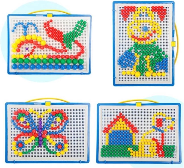 Тази играчка е любима на поколения деца и буди носталгия у възрастните. Простата конструкция се състои от цветни пластмасови гъбчета с различни размери и перфорирана дъска за поставянето им. Всичко е събрано в компактно куфарче, за да може вашето дете да вземе любимата си играчка навсякъде.