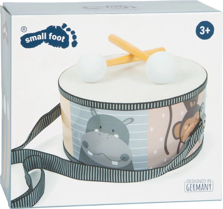 Детският барабан Цветно сафари от Small Foot е чудесен избор за развитие на ритъм, слухово възприятие и моторика. Благодарение на веселите илюстрации на животни децата бързо ще го заобичат и могат смело да тръгнат на поход – леко тяло, регулируема презрамка и практично закопчаване с велкро гарантират удобно използване.