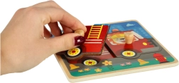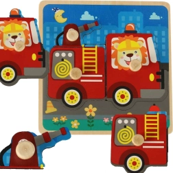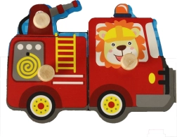 Дървен пъзел с мотив пожарна кола е идеален за малки деца, които искат да развиват координация и логическо мислене. Този цветен и забавен продукт подпомага развитието на фината моторика.