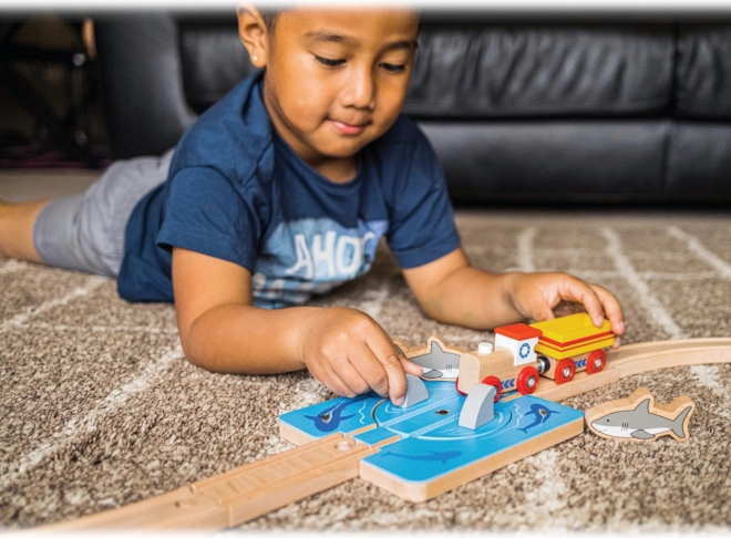Водовъртежът с акули превръща всяко дървено влакче в напрегната океанска мисия. Децата управляват въртящата се секция от трасето и решават дали влакът да премине безопасно покрай акулите. Този игрови елемент внася напрежение, истории и активно участие.