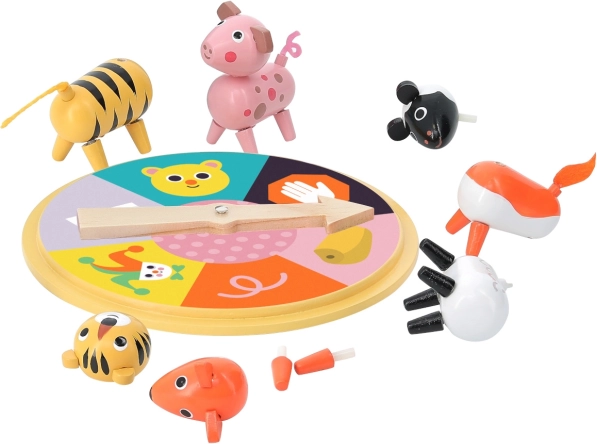 Колелото на късмета внася елемент на късмет и напрежение, като всеки играч постепенно сглобява своето животно според това, което му се падне. Страхотна динамика за деца!