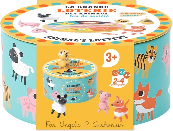 Vilac голяма лотария с животни е чудесна интерактивна игра, която позволява на деца и възрастни да се потопят в света на цветните животинки. Децата избират животно и се опитват да го сглобят от няколко части, но шансът има своята роля! Играта предлага страхотно изживяване, при което играчите се редуват да въртят колелото на късмета и събират отделните части на своите животни.