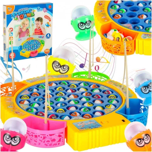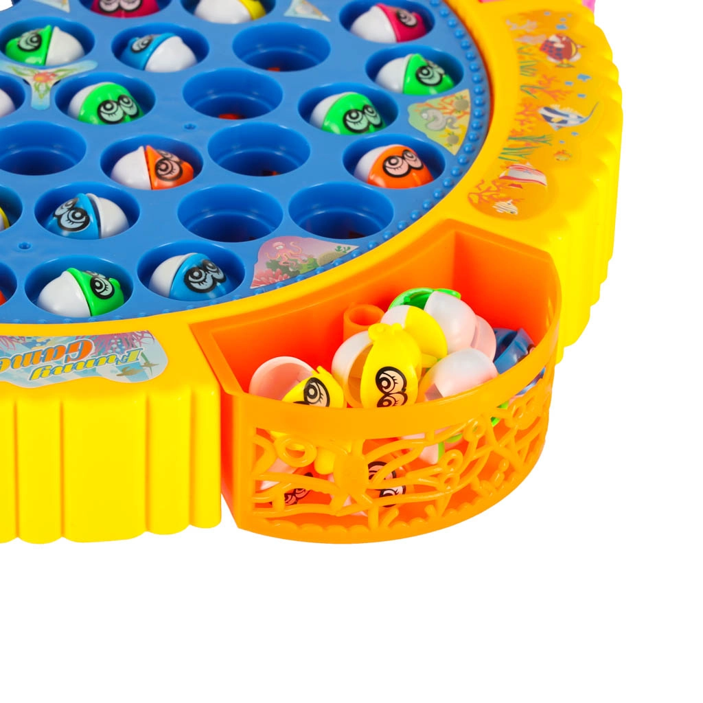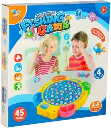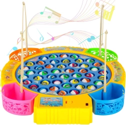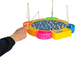 Забавна семейна игра за риболов с въртяща се платформа и музика, която включва 45 рибки и 4 въдички за 1–4 играчи. Подпомага рефлексите, концентрацията и сръчността, има цветни подвижни чашки за улова и звукови ефекти. Захранване с 3× AA батерии.