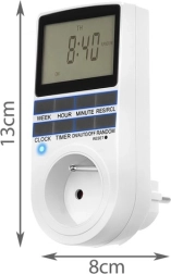 Дигиталният таймер е полезен във всеки дом, офис или магазин. Позволява управление на времето на работа на уредите и е оборудван с 8 бутона и reset за лесно програмиране. Благодарение на четливия дисплей лесно настройвате текущото време и програмата.