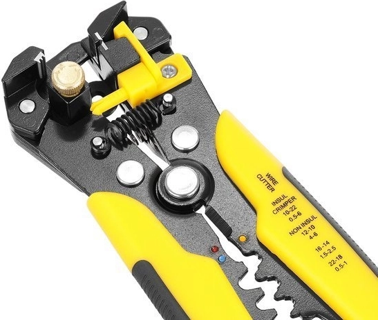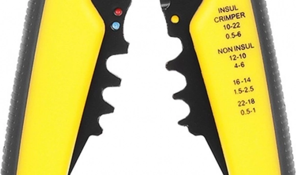 Сваляйте изолация, режете и кримпвайте проводници с един инструмент – идеален за електротехници и домашни майстори.