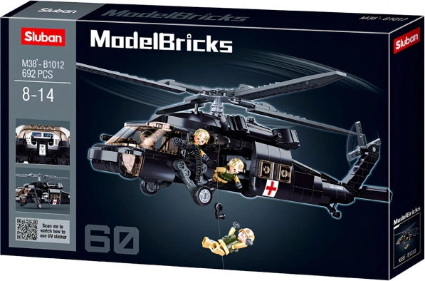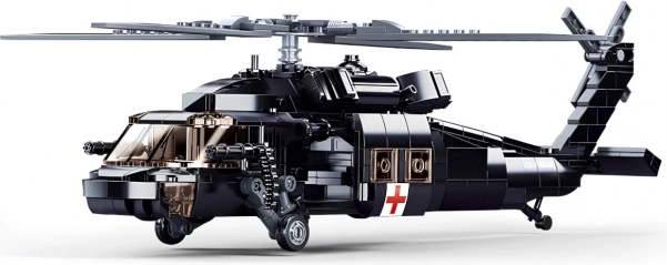 Влезте в света на динамичните въздушни спасителни операции със сглобяемия комплект Sluban ModelBricks UH–60 Black Hawk. Този детайлен модел на спасителен хеликоптер с червен кръст предлага реалистичен кокпит, въртящи се главен и опашен ротор, стабилни ски и аксесоари за сценарии на евакуация и първа помощ. Благодарение на 692 части и 4 подвижни фигурки ще се насладите на премислено строене и вълнуваща игра.