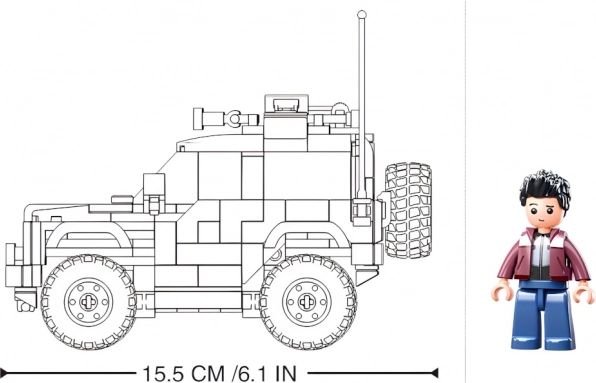 В комплекта има 1 фигурка и модел с пропорции, подходящи за градски и офроуд сцени. Идеален за сглобяване и експониране.