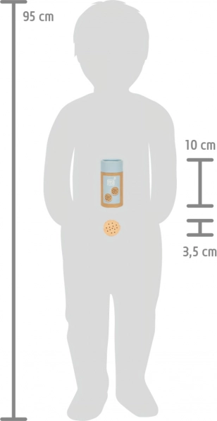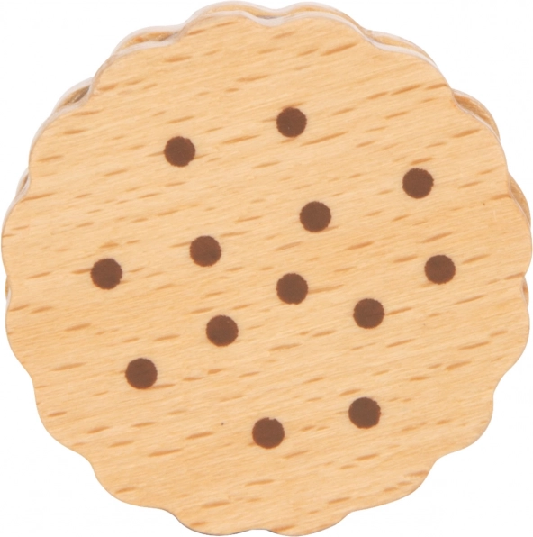 Тези пет здрави дървени бисквитки са идеалното допълнение към детските игри. Те не само стимулират креативността и въображаемата игра, но и помагат за развиване на моторните умения благодарение на своята естествена и реалистична текстура. Всяка бисквитка има шоколадов пълнеж и привлича вниманието на децата с детайлите си.