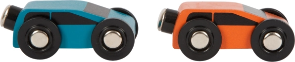 В комплекта са включени две колички и детайлни аксесоари: бензиностанция и зарядна станция, повдигаща рампа и автомивка с текстилни четки. Здравата изработка от дебел дървен шперплат с елементи от масивно дърво и безопасна пластмаса гарантира стабилност и издръжливост. Продуктът изисква сглобяване; в опаковката има илюстрована инструкция.