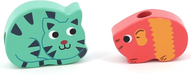 Тази чудесна низанка с животни предлага не само забавление, но и обучение за вашите деца. Благодарение на 12-те илюстрирани дървени мъниста във форма на животни като котка, мишка, заек и жаба, децата могат да се радват на часове творческа игра.