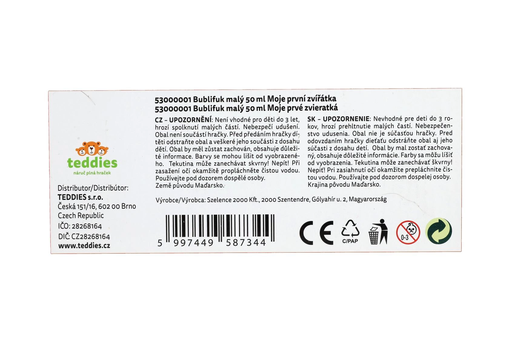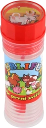 Забавен бълбукатор с мотив Моите първи животни ще зарадва всяко дете. Съдържа 50 мл сапунен разтвор, във капачката е интегрирана игра, а духалката е част от капачката. Идеален за празненства, игри на открито и малки награди. Подходящ за деца от 6 години.