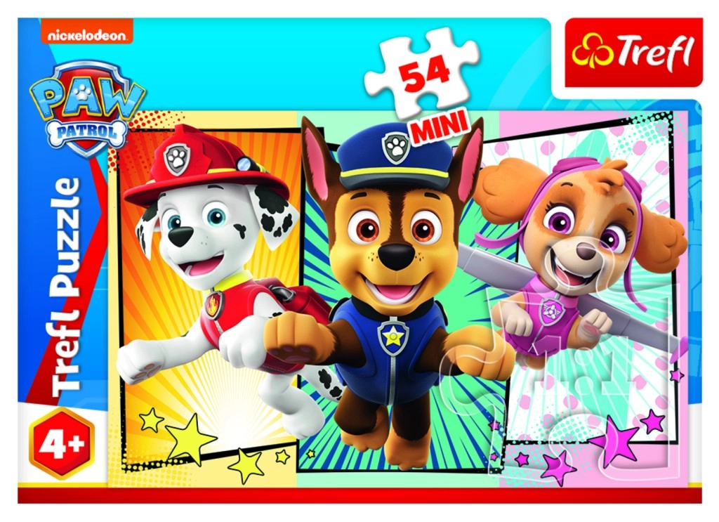 Децата ще се забавляват, докато подреждат тези цветни минипъзели с героите от Пес Патрул. Всяка опаковка съдържа 54 части, идеални за забавна и дидактична дейност. Пъзелът е подходящ и за предучилищна възраст, за малчугани, които желаят увлекателна тренировка на фантазията и моториката.