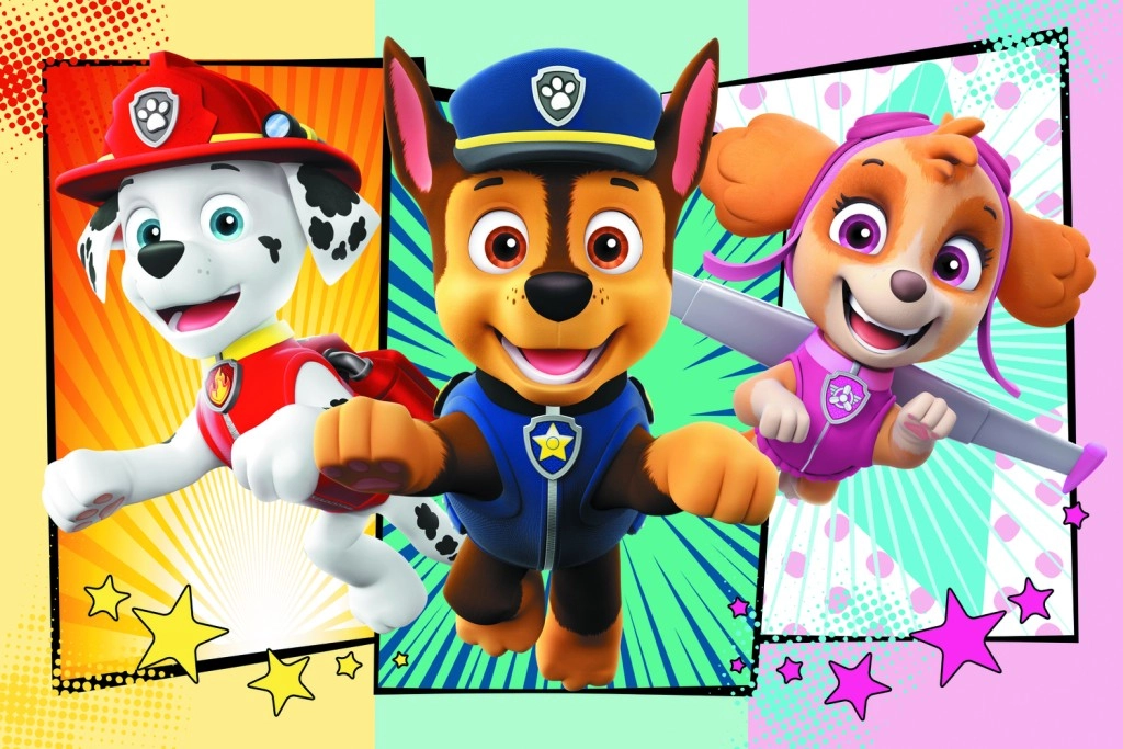 Пъзелът включва героите от любимия Пес Патрул, което гарантира много забавление за децата.