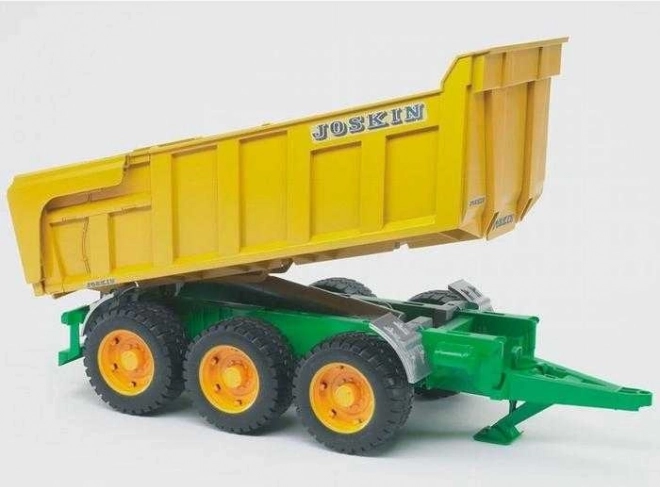 Детайлно изработеното самосвално ремарке JOSKIN от BRUDER носи на децата реалистична игра на ферма и строеж. Благодарение на високоповдигащата се каросерия, управлявана от телескопично рамо, товарът се разтоварва лесно, а автоматично отварящата се задна врата осигурява плавно изсипване. Стабилността е гарантирана от триосната конструкция и практичния сгъваем подпор за безопасно паркиране.