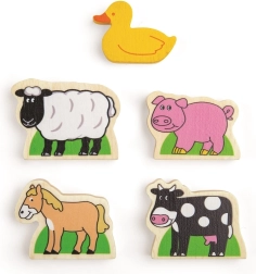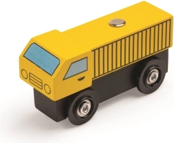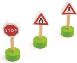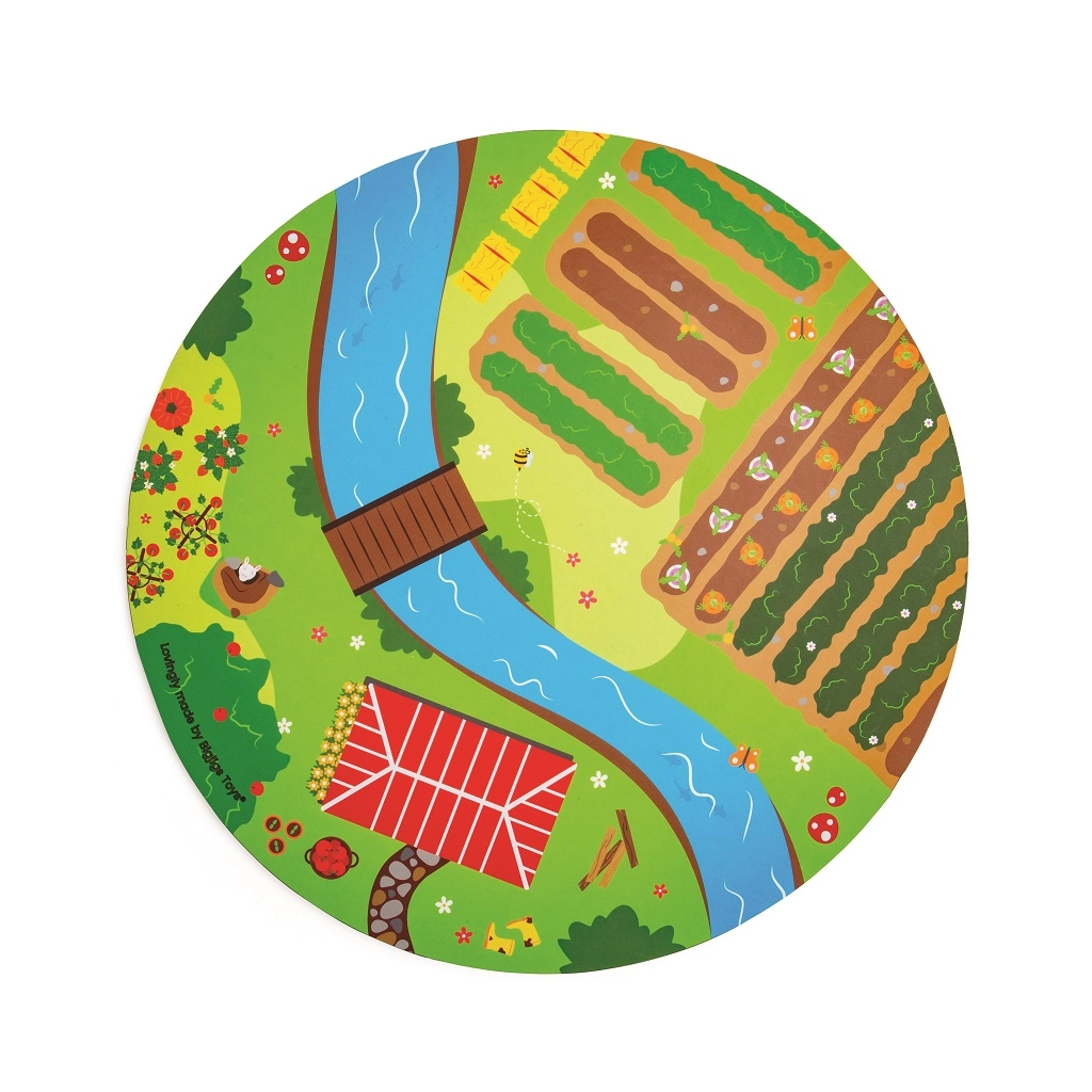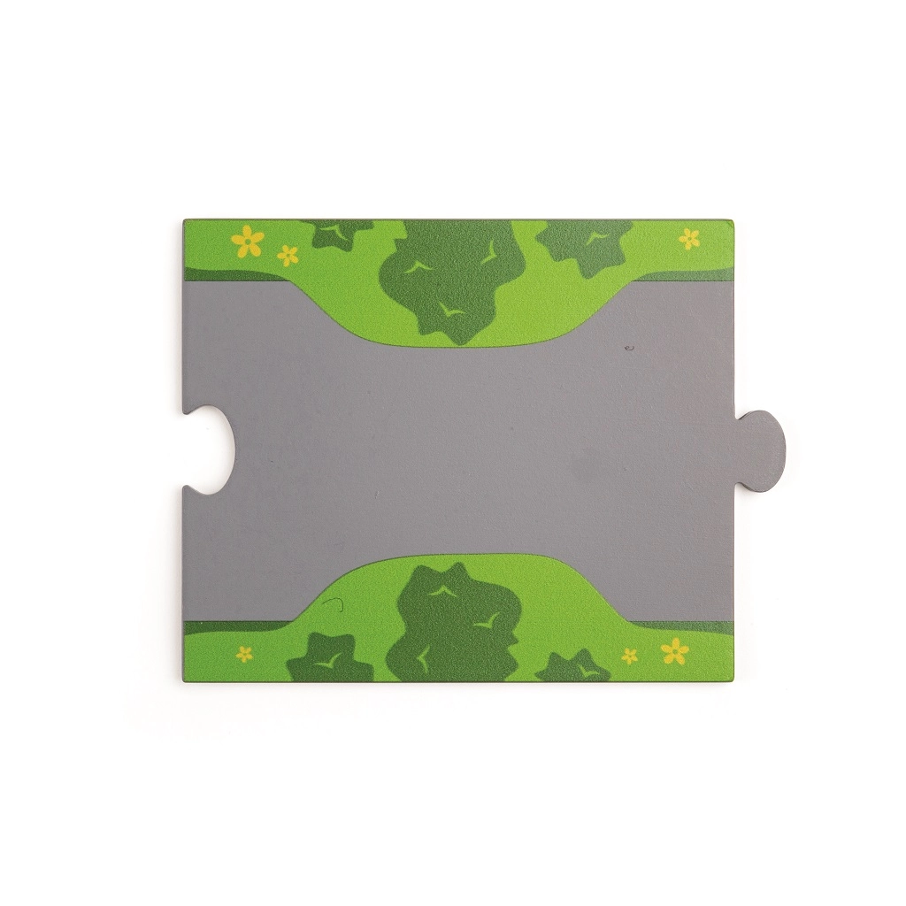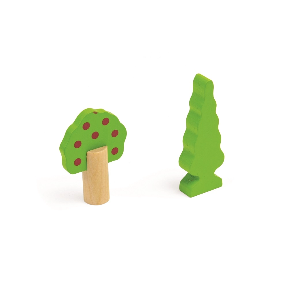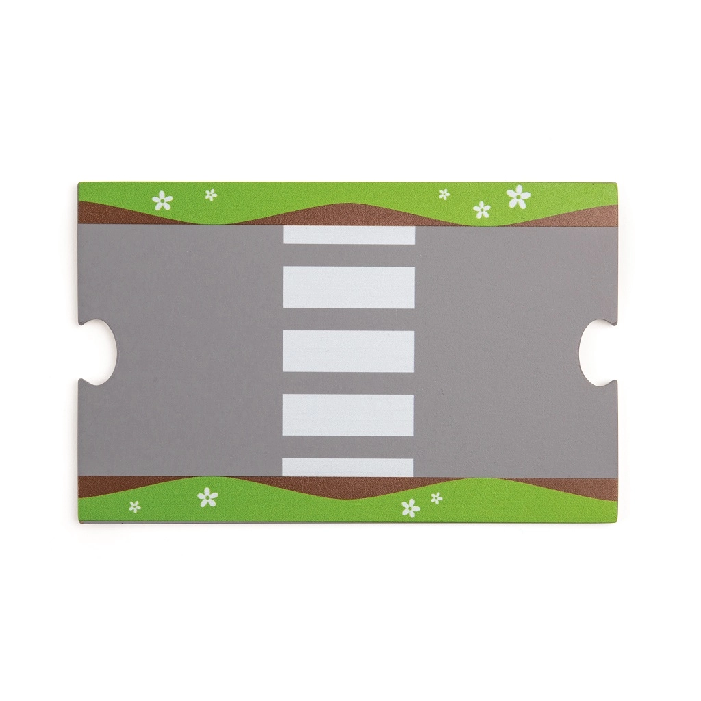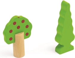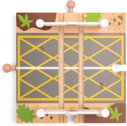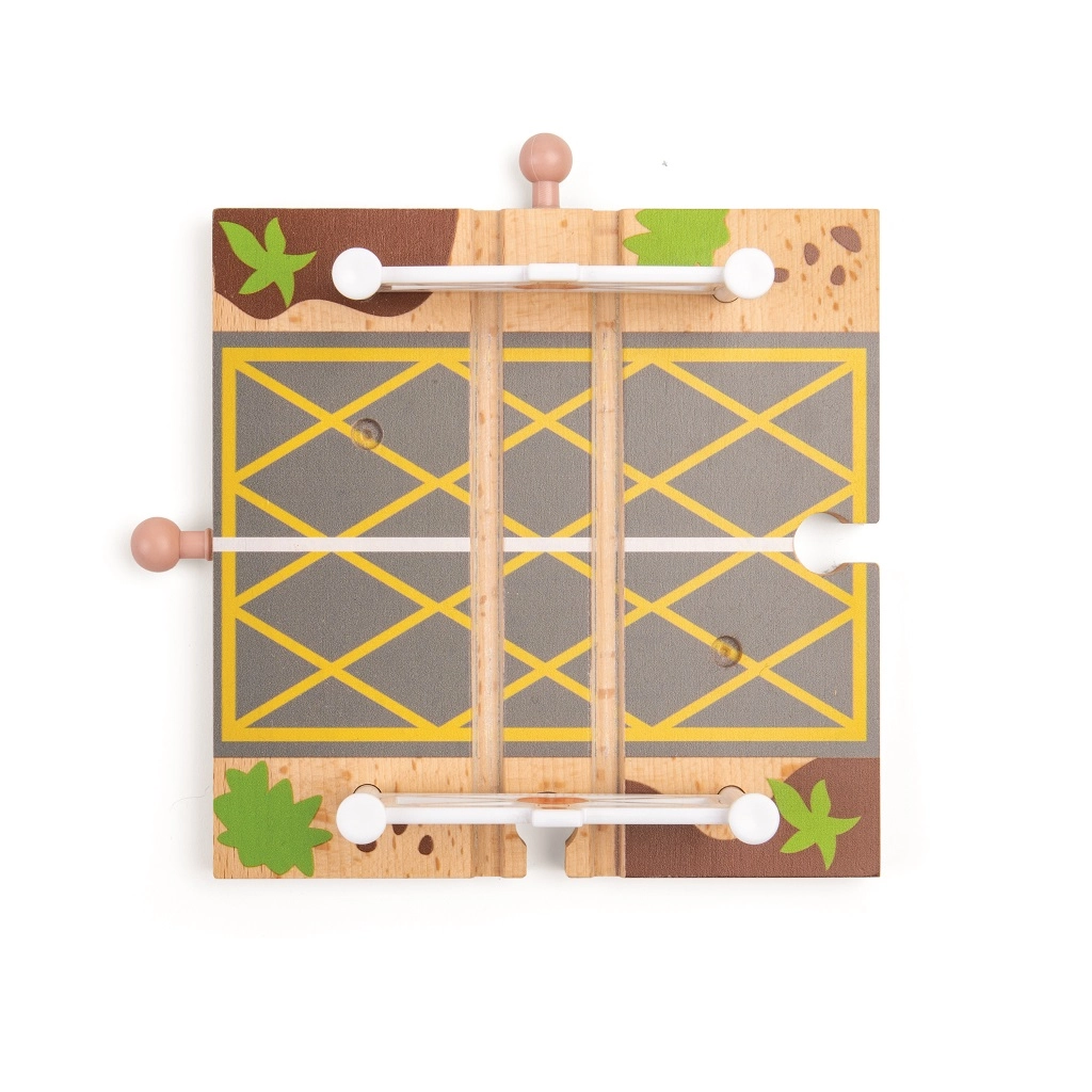 Тази дървена железопътна линия със селски път е перфектна комбинация от железопътна линия и автописта, които възпроизвеждат реалния транспортен свят. Благодарение на мостовете и прелезите вашите деца ще се потопят в свят, пълен със забавни приключения. Всичко е допълнено с местни аксесоари като ферма, сгради и дървета, които разкрасяват околната среда.