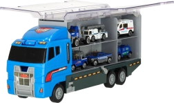 Синият камион не само че превозва до 14 превозни средства, но и реалистичните му детайли го правят неустоима играчка за децата. Прозрачните вратички и изстрелвачът добавят вълнение.