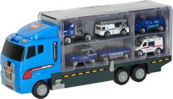 Големият син камион комбинира функция за съхранение с възможности за игра. Позволява превоз на до 14 малки метални колички, които са част от комплекта. Количките реалистично имитират истински полицейски и аварийни автомобили. Камионът има две страни с прозрачни вратички и предпазни заключвания, което гарантира, че количките няма да изпаднат по време на движение. Съдържа също изстрелвач за колички в предната част, който добавя още измерение към играта.