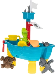 С пиратската корабна масичка за игра, която комбинира водна и пясъчна игра, децата се впускат в безкрайни приключения. С този мултифункционален комплект пред тях се отваря свят, пълен с водни игри и пясъчни постройки.
