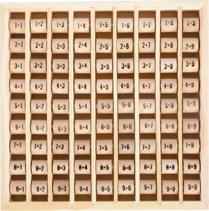 Умна дървена помощна средство за деца от 6 години, която по забавен начин упражнява малката таблица за умножение. Благодарение на въртящите се цилиндърчета лесно сменяте задачите и проверявате резултата. Изработено от 100% FSC сертифицирано дърво за безопасно и устойчиво учене. Компактни размери 21 × 21 × 2 cm, подходящи за бюро и раница.