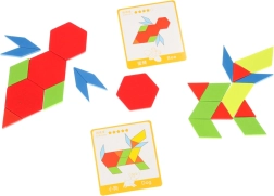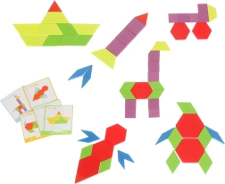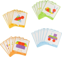 Децата могат да подреждат по приложените карти или да измислят собствени шарки, което повишава тяхното въображение. Благодарение на практичната торбичка за съхранение пъзелът е лесно преносим, така че можете да го вземете навсякъде.