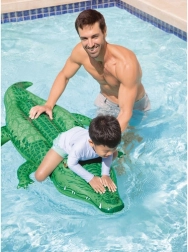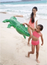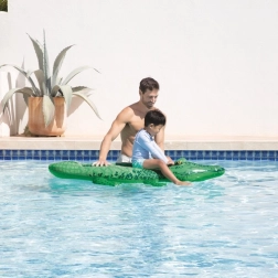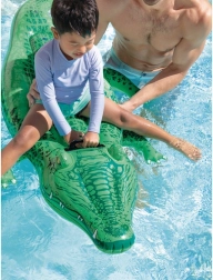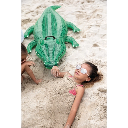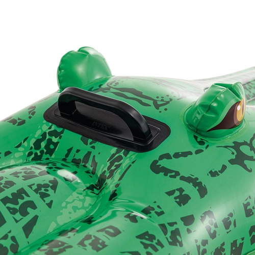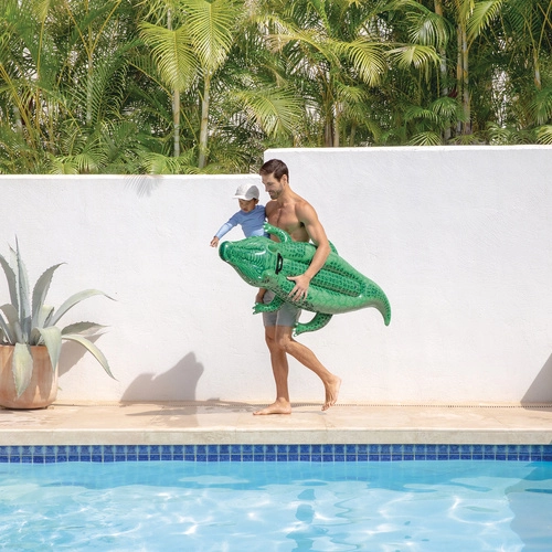 Надуваемият крокодил INTEX е страхотна водна играчка за деца от 3 години. Благодарение на здравата ръкохватка осигурява стабилност и сигурност, а издръжливото PVC (0,25 мм) гарантира дълъг живот дори при честа употреба. Реалистичният дизайн ще зарадва малките плувци и ще насърчи активната игра във водата.