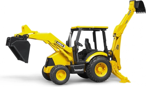 Bruder трактор JCB MIDI е реалистичен модел на многофункционален товарач, който предлага отлична стабилност и превъзходни функции. Тази играчка включва предна кофа с две позиции – за товарене и за изсипване, която лесно се сменя. Задното багерно рамо може да се свали, а седалката на водача е въртяща се, което придава на играта реализъм и динамика.