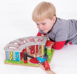 Дървеното депо е предназначено за пет различни влакчета и включва функционален въртящ се кръг, който позволява лесно придвижване на влаковете между отделните гаражи. Системата включва отварящи се врати и зарядна станция, което допринася за реалистично изживяване при игра.