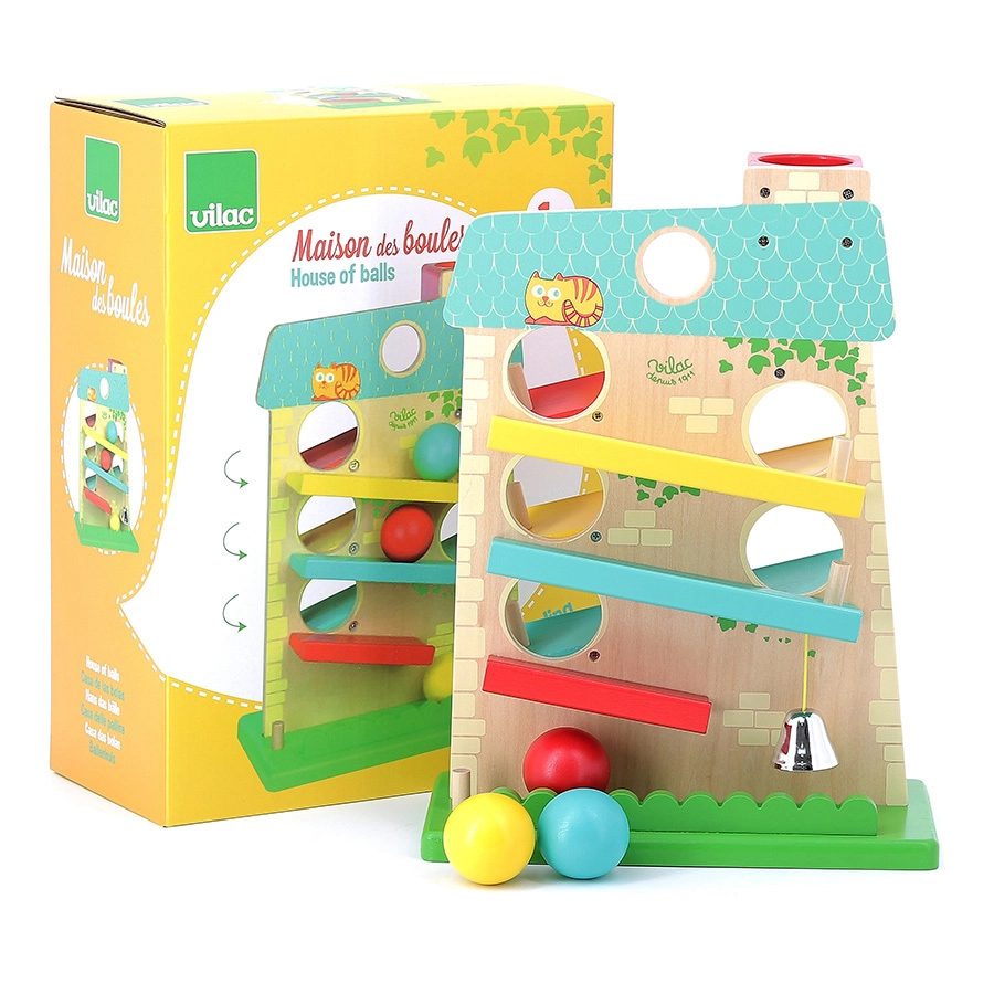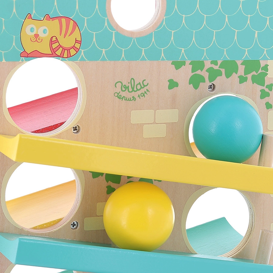 Открийте магията на движението и звука с каскадната къщичка VILAC. Благодарение на добре обмислената конструкция топчетата се движат плавно от страна на страна по трите рампи и завършват с приятно иззвъняване на металното звънче, което децата обожават. Здравата изработка от дърво и метал гарантира дълъг живот и безопасна игра.
