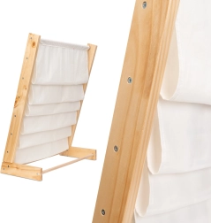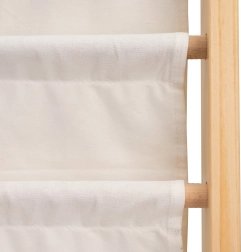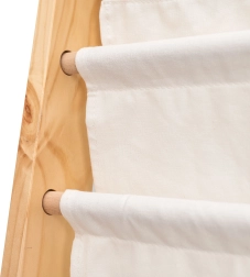 Рафтът е изработен от естествено дърво и качествен памучен плат, има гладки ръбове и стабилна конструкция за максимална безопасност. Вечната визия в комбинация от дърво и бял цвят подхожда на всеки интериор и насърчава здравословни навици за четене и поддържане на ред.