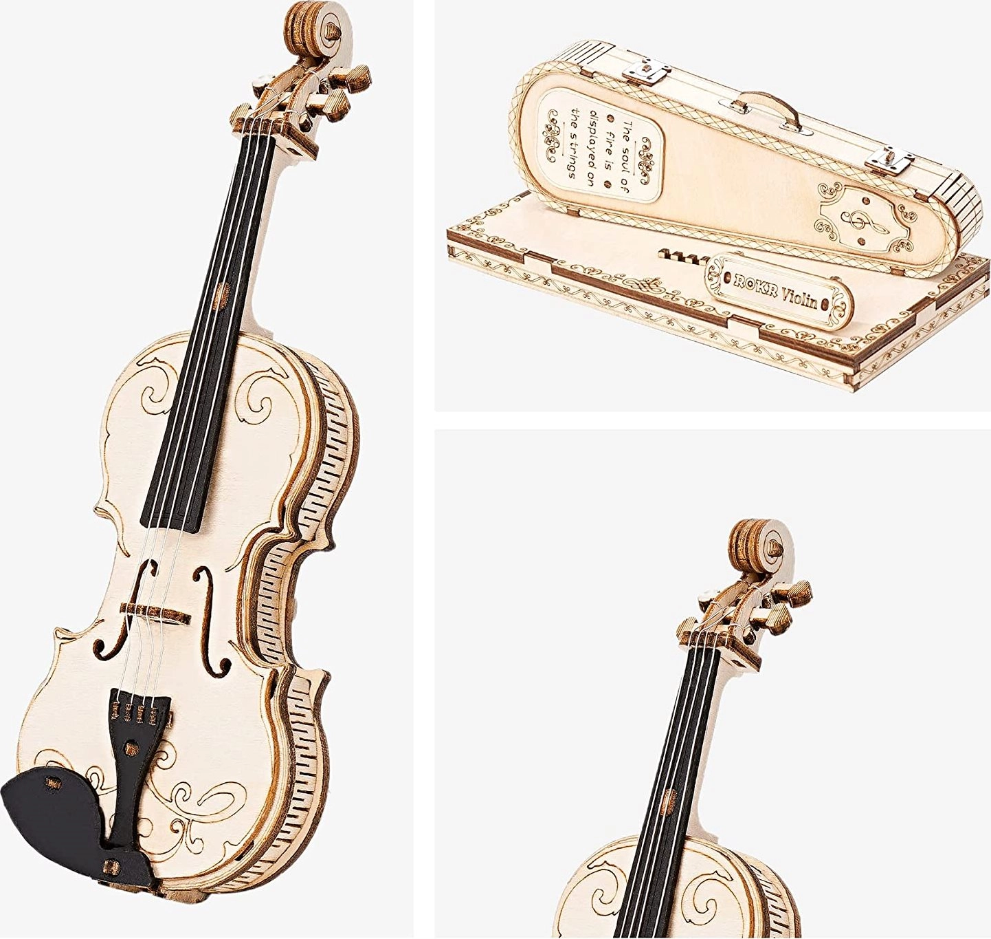 Този дървен 3D пъзел виола е добре обмислен декоративен модел, който изпъква на рафт, работно бюро или в музикален кът. Естествената дървена повърхност и фините резбовани детайли подчертават майсторската изработка и придават на интериора уютен, артистичен акцент.
