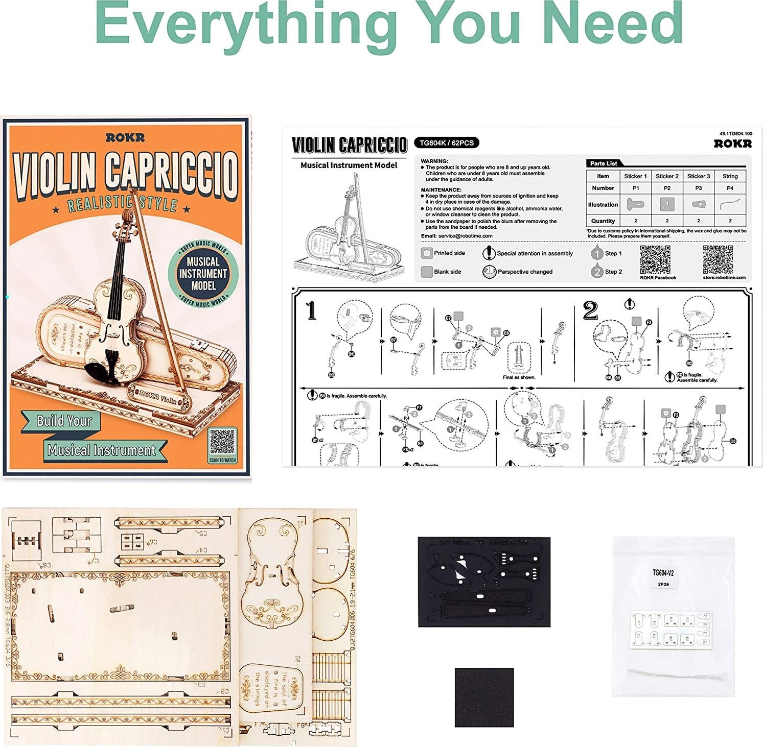 Моделът е предназначен за изложение, не е интерактивен и няма подвижни части. Сглобяването е лесно и подходящо и за начинаещи – благодарение на ясните, подробни инструкции и качествено изрязаните части. Страхотен подарък за деца от 8 години, любители на музиката и колекционери на дървени модели.