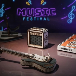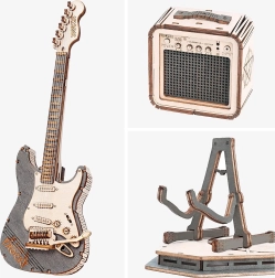 Този дървен 3D пъзел на електрическа китара ще зарадва всички любители на музиката и елегантния декор. Моделът е проектиран за излагане – без подвижни части, с чист естествен вид и прецизно изрязани детайли, които изпъкват във всеки интериор.