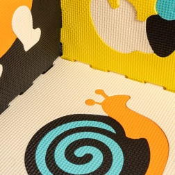 Постелката е изработена от качествена EVA пяна, неслippery повърхност, водоустойчива и много лесна за поддръжка – достатъчно е да се избърше с влажна кърпа. От частите могат да се създават и 3D конструкции като малка къщичка или ограждение, за да се обособи безопасна зона за игра.